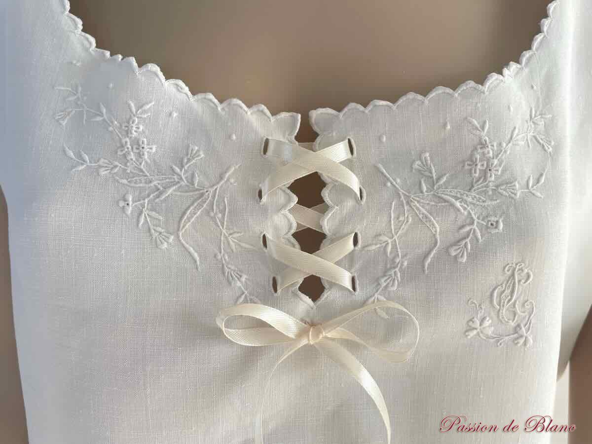 Belle chemise de jour brodée main sur toile de lin fin avec superbe broderie