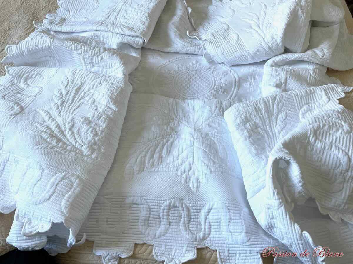 Belle couverture festonnée 4 côtés à la main , piqué Marseillais