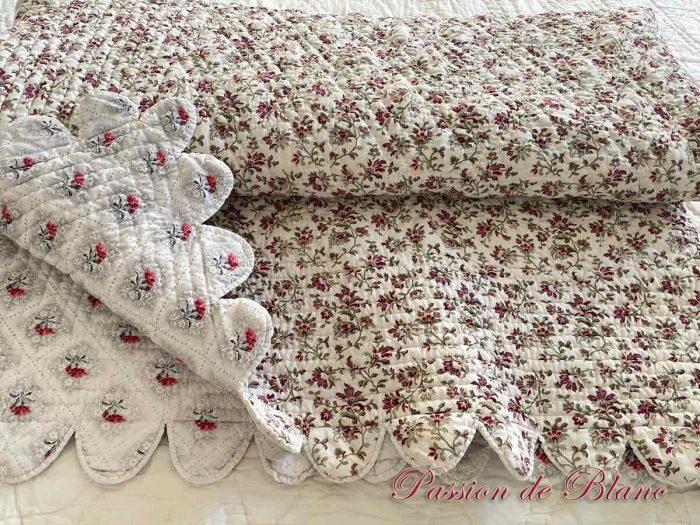Belle courtepointe Piquée Main, Festonnée: Double Face Avec Motifs Fleuris, Provençaux