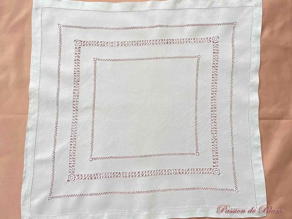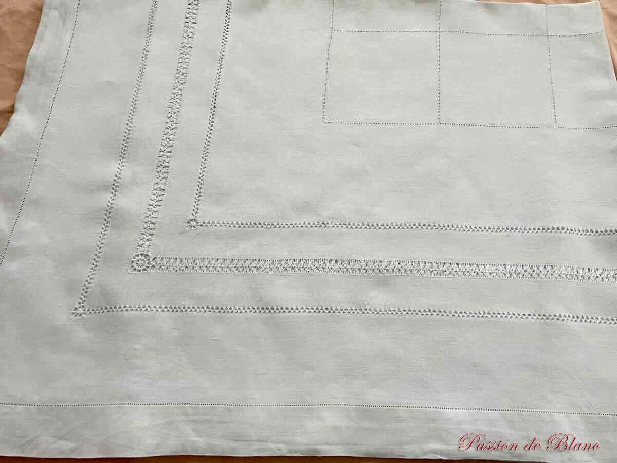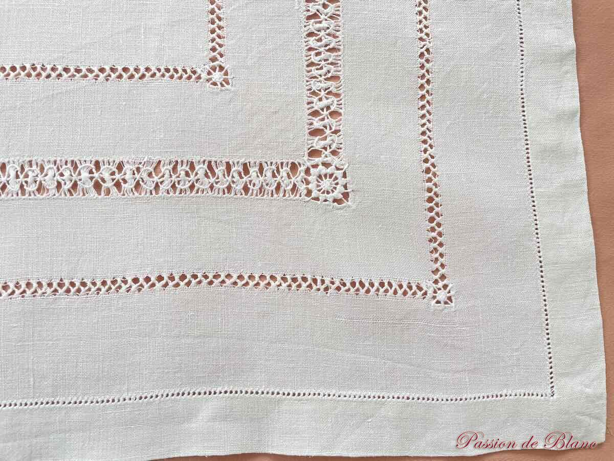 Réalisé sur une toile en lin fin ouvragée de différents jours très décoratifs.