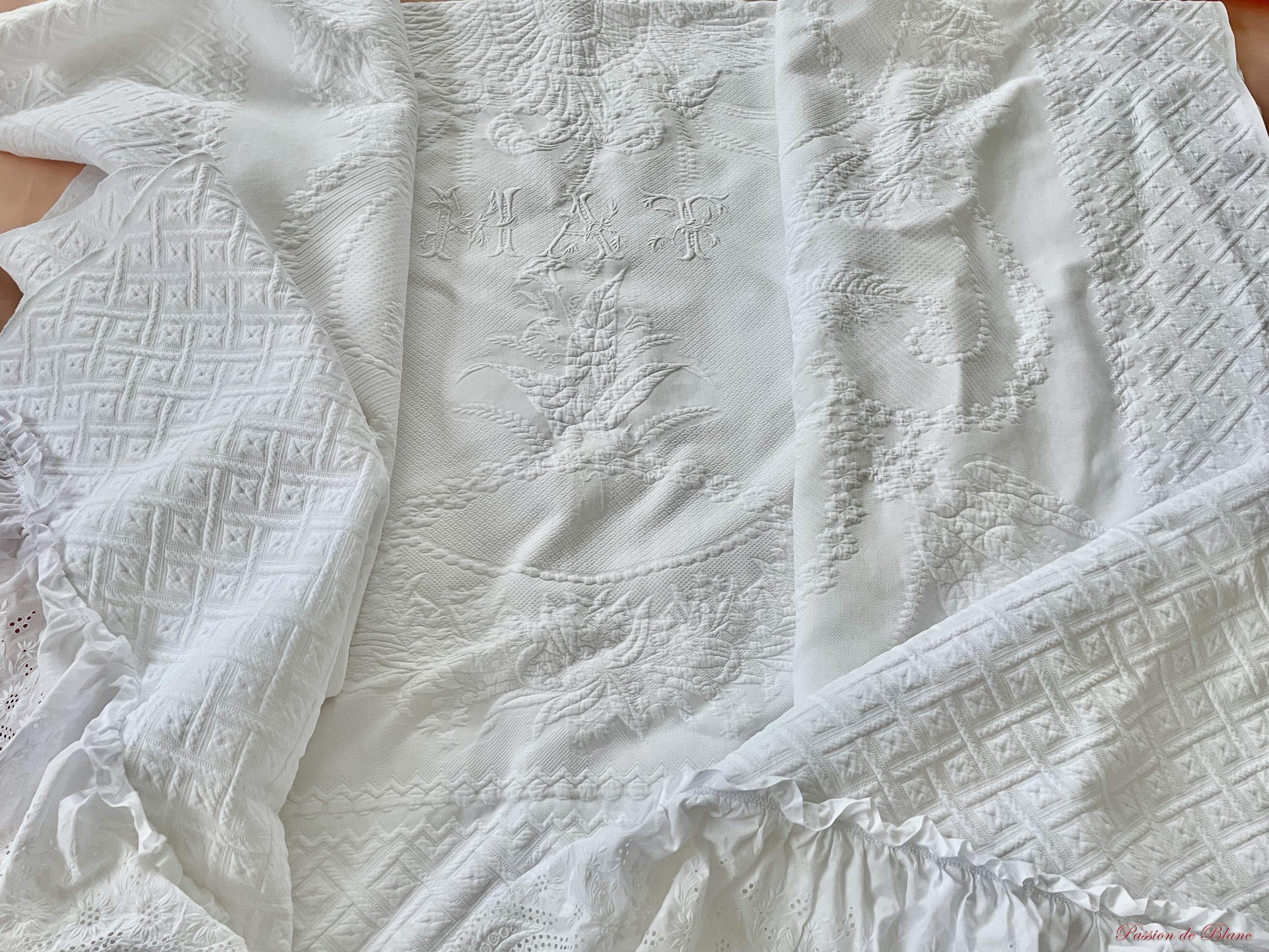 Le centre de la nappe est ouvragé d’un rectangle richement ouvragé (1,65 m x 1,47 cm).
